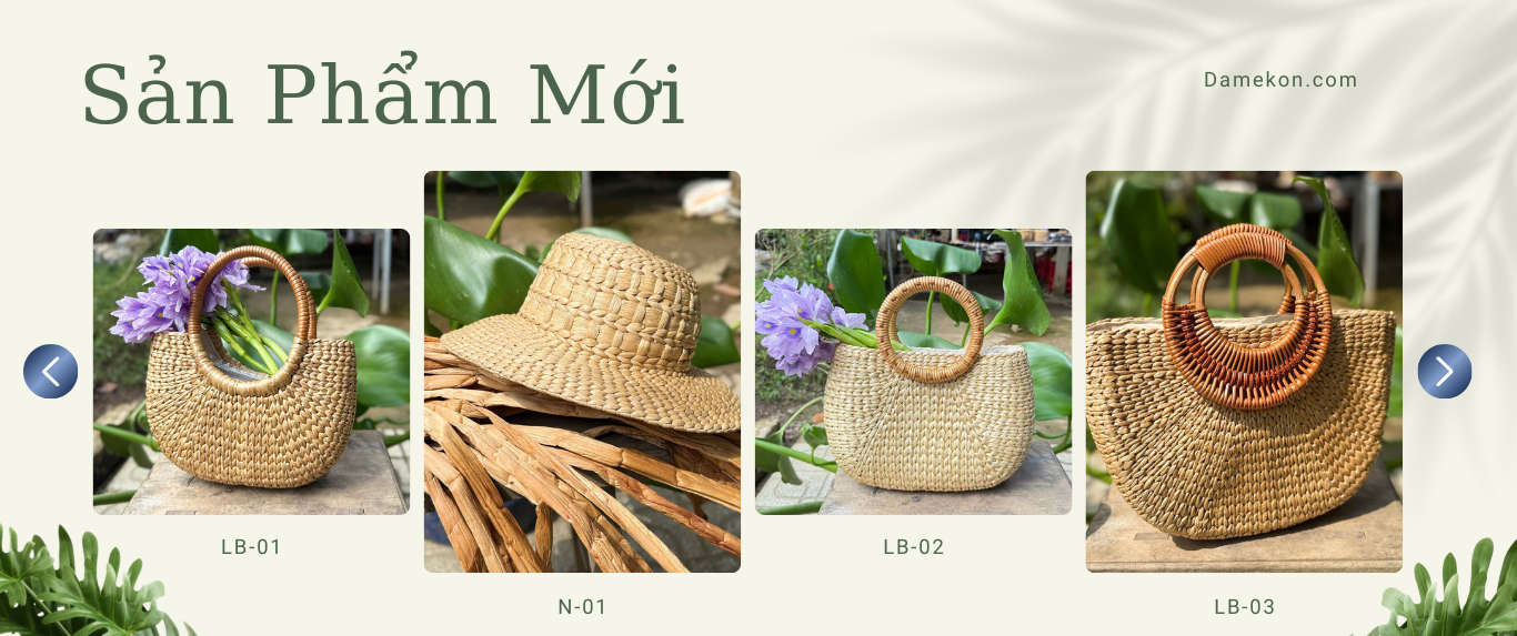 Xem chi tiếtDAMEKON mang đến các sản phẩm lục bình – mây tre đan thủ công chất lượng cao, an toàn, bền đẹp và được tạo tác bởi những nghệ nhân giàu kinh nghiệm. Chúng tôi cam kết thiết kế tinh tế, giá cả hợp lý và thân thiện với môi trường, mang lại giá trị bền vững